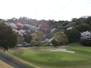 満開だったり満開を少し過ぎたくらいの桜が多く、半分花見気分での練習ラウンドです。