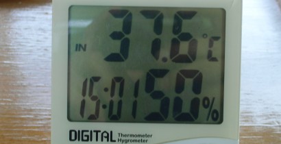 いつも、時計を兼ねた温湿度計を打席の近くに置いてあるんですが・・・