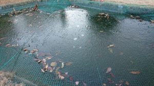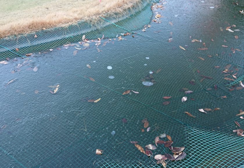 香川グリーンゴルフさんのショートコースの池が凍っていました。